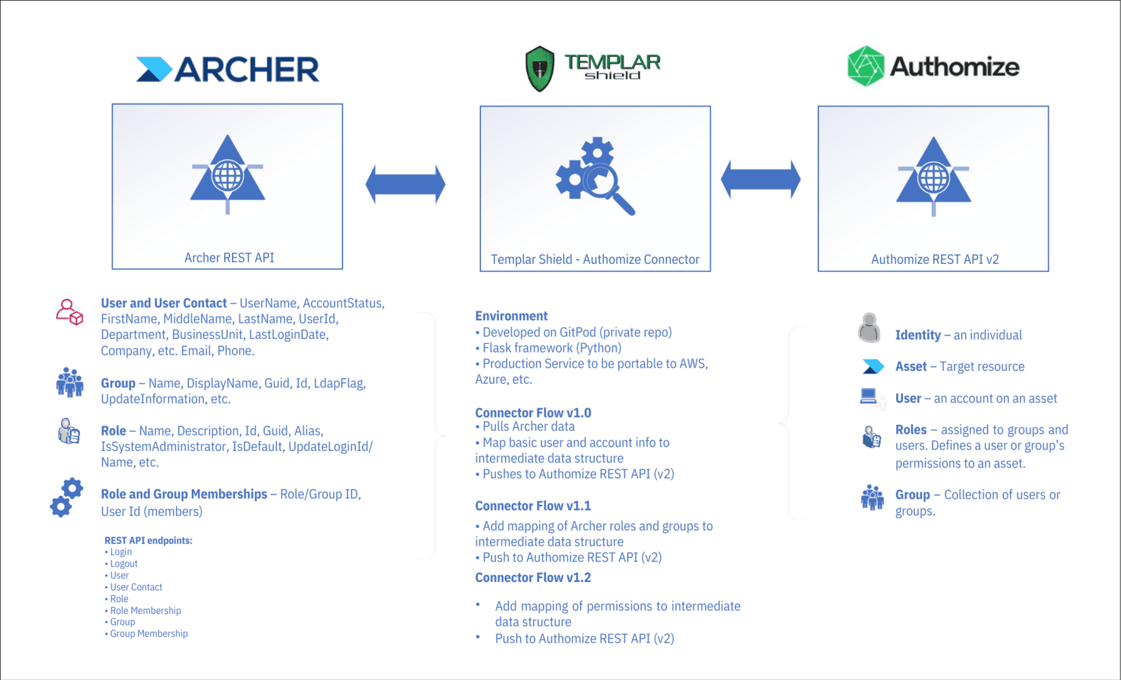 - Archer and Authomize GET endpoints for retrieving basic identity, group, role, access, and related details